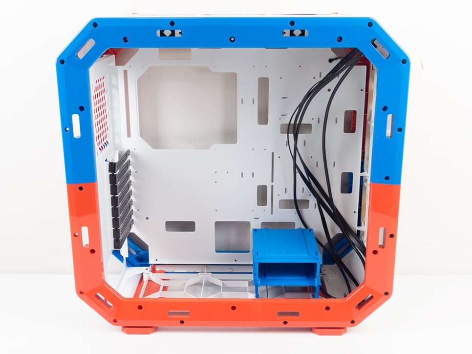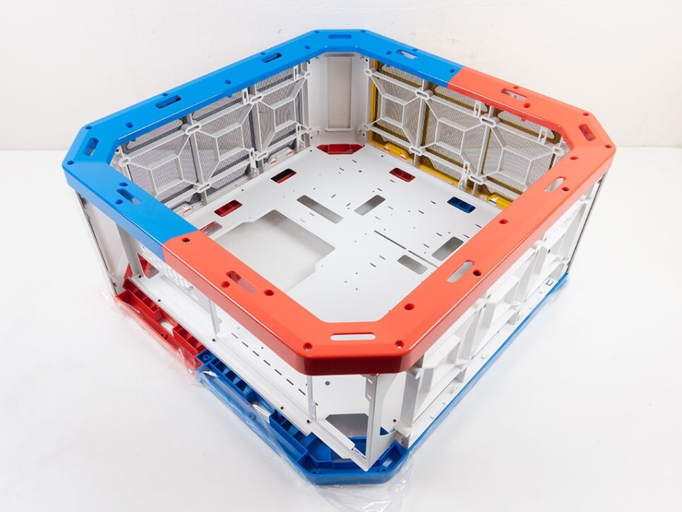 그 결과 넓고 유능한 E-ATX 케이스가 탄생했습니다. 이러한 대형 마더보드 형식을 사용할 때 약간의 타협이 있지만 ATX 변형을 사용하는 경우 강력한 하드웨어와 뛰어난 액체 냉각 가능성을 위한 충분한 공간이 제공됩니다. 바닥에 먼지 필터가 없고 더 잘 부착할 수 있는 고리나 발과 같이 약간 짜증나는 요소가 있지만 최종 결과는 재미있고 다채롭고 독특하게 다른 케이스입니다. 가격이 조금 비싸더라도 4개의 소매 패키지 팬이 포함되어 있지만 케이스 자체의 가격은 약 140달러입니다. 요즘 우리에게 익숙한 것보다 플라스틱이 조금 더 많습니다.