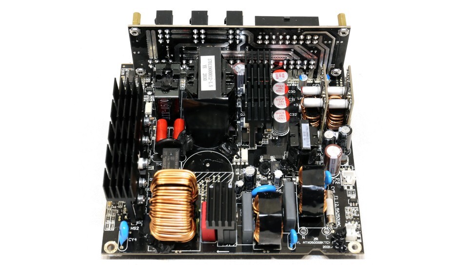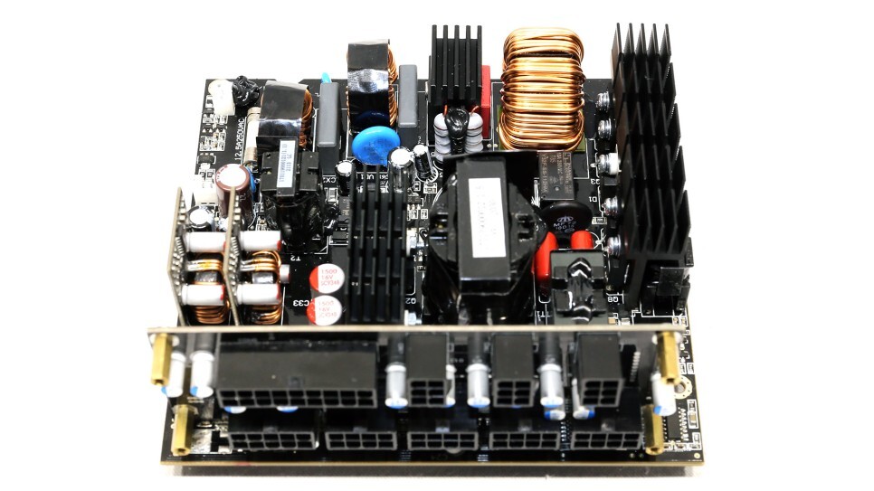 몇 년 전에 리뷰한 Steampunk 750W 장치와 비교할 때 이 플랫폼은 5VSB 회로에서 다른 부품을 사용하므로 효율성이 더 높습니다. 또한 2차측에 더 나은 커패시터가 있습니다. 그러나 냉각 팬은 불행히도 두 모델에서 동일합니다.
