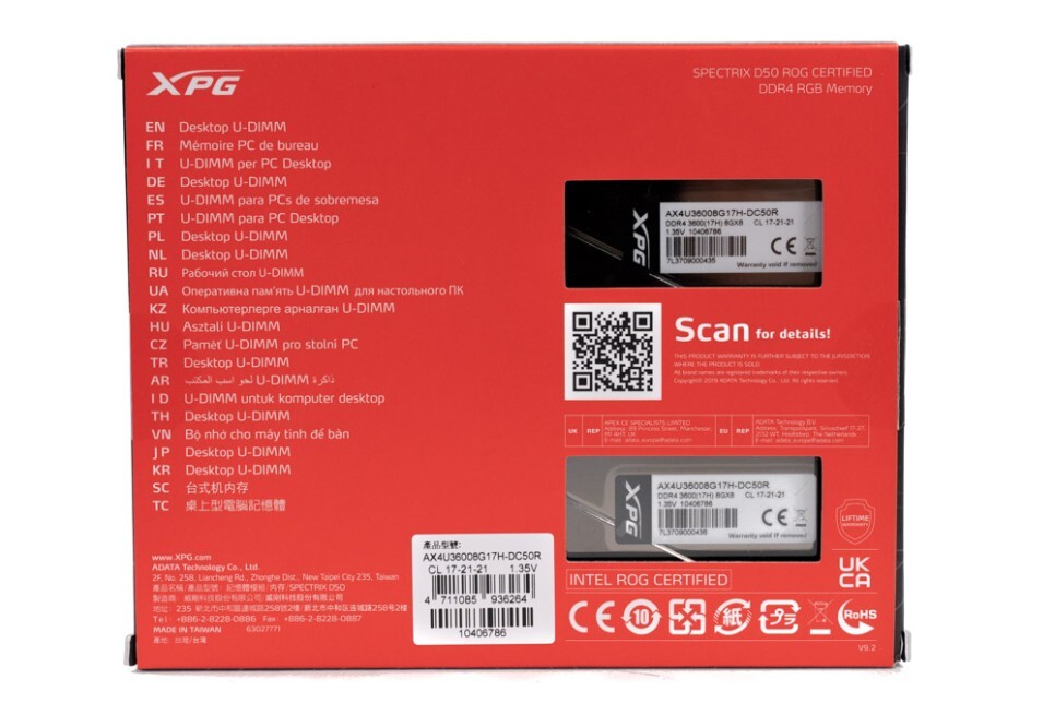 ASUS 인증 목록에 없는 마더보드에서 이 메모리 키트를 사용하면 3600MT/s가 보장되지 않지만 의도한 대로 작동할 가능성은 다른 3600MT/s 메모리 키트와 거의 같습니다. 오늘 시장. 그러나 그러한 키트가 존재하는 이유에 대해 쉽게 반론을 제기할 수 있습니다. 하나는 시각적으로 ASUS 브랜드 장비와 잘 어울립니다. 다른 하나는 XPG가 특정 마더보드에 대한 지원을 보장한다는 것입니다. 이 정보는 XPG 웹사이트에서 약간 벗어나 있고 Intel ASUS Z490 및 Z590 기반 ROG 마더보드만 나열되어 있습니다. 그렇긴 하지만 구매자는 이 메모리 키트가 해당 목록에 있는 마더보드와 페어링될 때 실제로 문제 없이 실행된다는 사실에 대해 최소한 마음의 평화를 가질 것입니다.