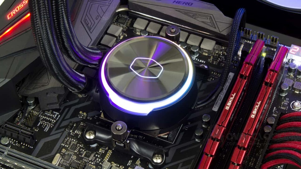 마무리가 정말 최고이기 때문에 CoolerMaster가 수랭식 키트를 생산을 마스터했다고 생각합니다. 펌프는 라디에이터와 마찬가지로 깔끔합니다.
