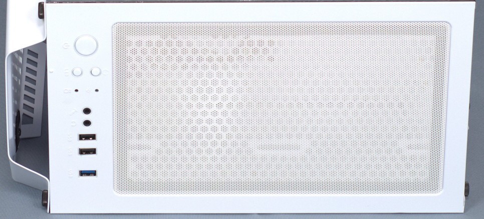 단점으로 전면 패널에 먼지 필터가 없고 PSU를 배치하는 영역과 슈라우드 영역에 배치된 2.5인치 드라이브용 슬레이드가 없다는 점을 지적합니다. 두개의 USB2.0 포트를 지원