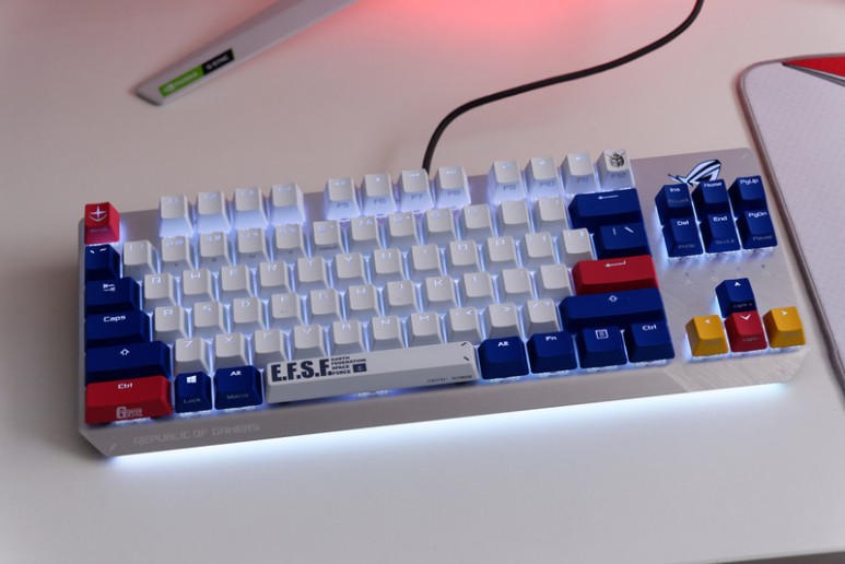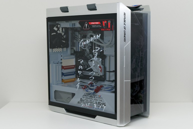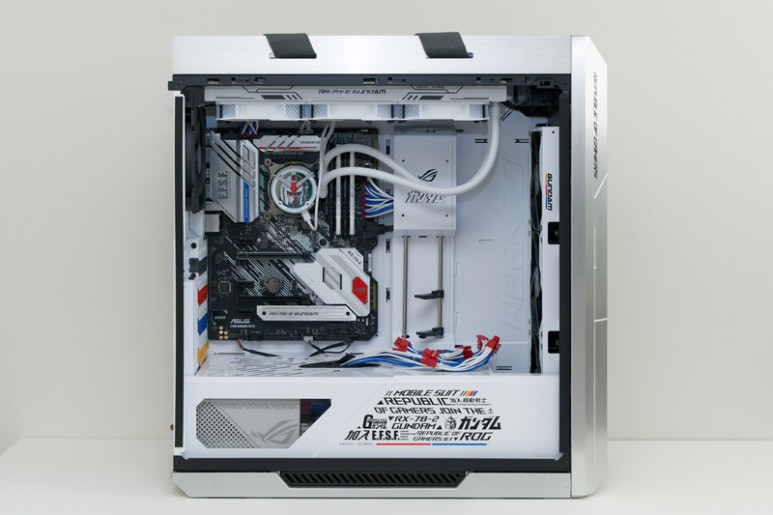 모두 기본 모델은 존재하지만 단순히 "스티커를 붙여 끝"과 같은 어중간한 합작이 아니라 그것을 위해 생산라인을 준비하고 있는 것 같은 제작 분류에서 "ASUS의 진심'이 엿보이는 제품 군이다. 여기에서는 지구 연방군의 아무로 레이의 기체 "RX-78-2 건담'을 모티브로 한 상품을 사진으로 소개하려한다.