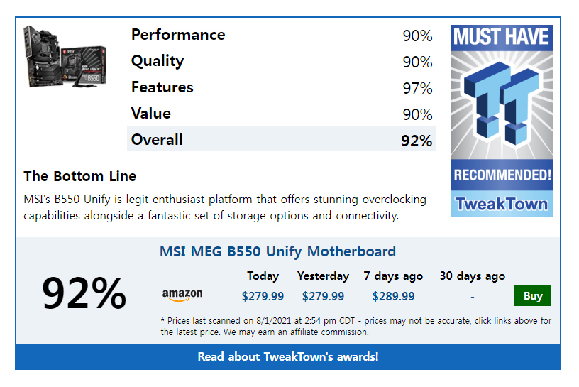 tweaktown.com에 올라온 B550 메인보드인 MSI MEG B550 Unify 리뷰입니다.
